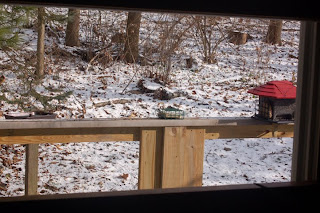 Winter Sundays after Bob goes to work, I take the opportunity to open the kitchen window and photograph the birds at our feeders. I don my winter coat, sit on the stove away from the window and wait. It is peaceful (and unusual for me to "sit still").